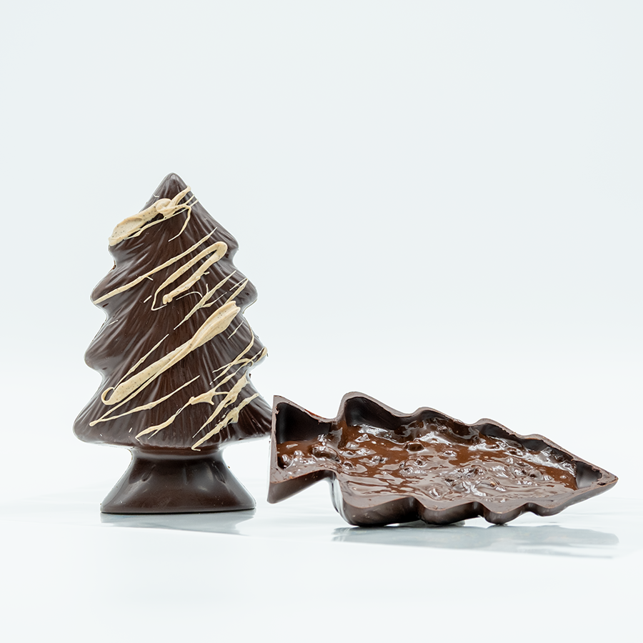 Scopri il nostro alberello di cioccolato artigianale, una creazione elegante e golosa pensata per rendere speciali le feste. Realizzato con cioccolato finissimo, modellato a mano con cura, racchiude al suo interno un irresistibile cremoso al caffè: una farcitura morbida, profumata e avvolgente, perfetta per chi ama i sapori intensi e raffinati.
