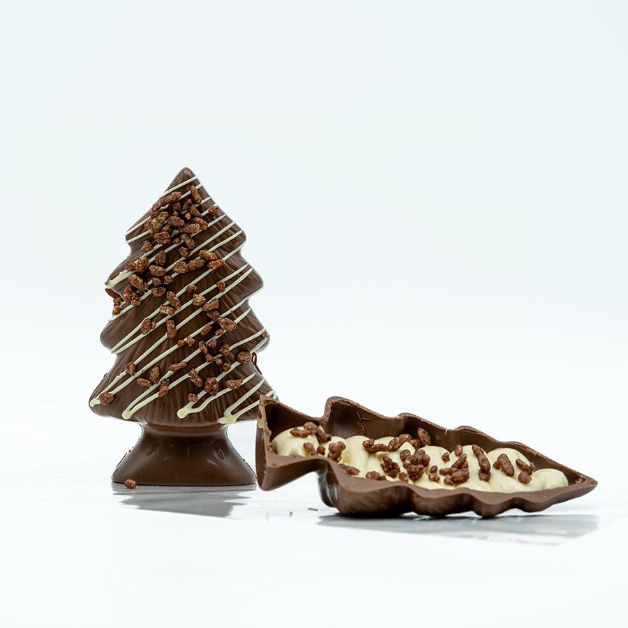 Alberello di Cioccolato con Ripieno Cremoso al Cioccolato Bianco e Cerealini Croccanti
