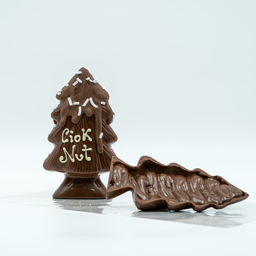 Il nostro alberello di cioccolato artigianale è una piccola gioia delle feste, realizzato con cioccolato finissimo modellato con cura e attenzione ai dettagli. Al suo interno custodisce un irresistibile cremoso di cioccolato alla nocciola, morbido, avvolgente e ricco di gusto.