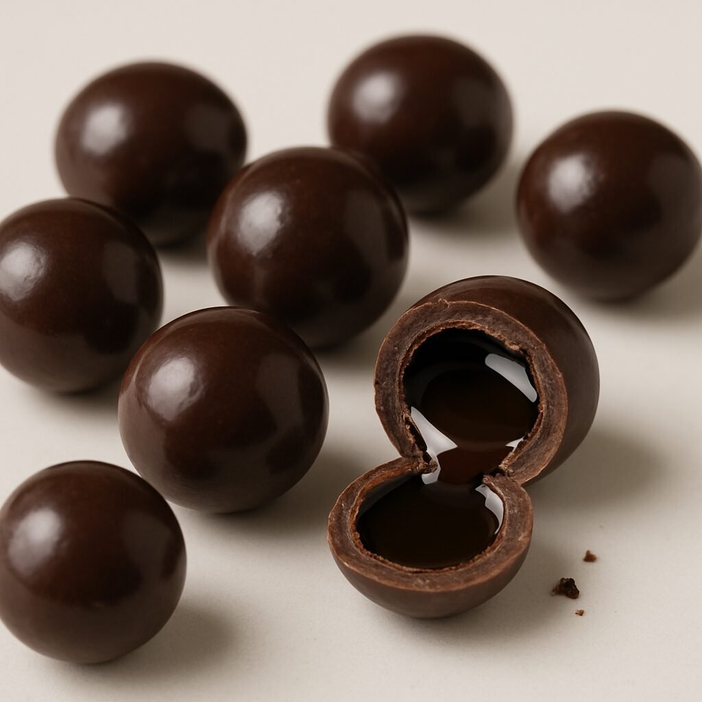 Praline al Caffè, Eleganti, intensi e irresistibilmente aromatici: i nostri drageès artigianali al cioccolato con cuore liquido di caffè espresso sono una piccola gioia di pasticceria che unisce la croccantezza del cioccolato di alta qualità alla sorprendente esplosione di vero espresso italiano.